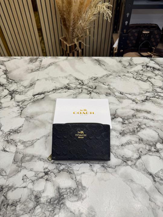 • Coac_h Embossed Signature Zip-Around Mini Wallet With Box (Black) (AAA1999)
