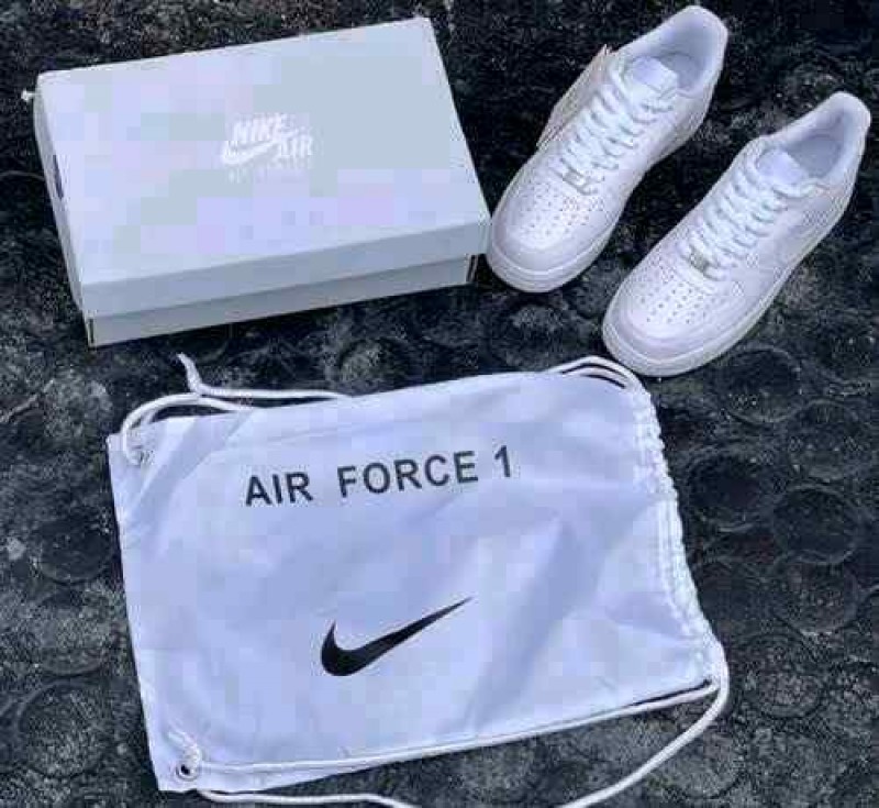 • Nikee Airforce 1 White Pure Leather Heavy Quality (With Dust Bag Bill Carry Bag 1 Complementary Bottle Lace)_